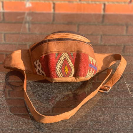Riñonera antiEMF de piel marrón claro con bordado étnico